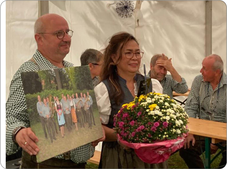 des 25-jährigen Jubiläums eigens für die Elbetaler Blasmusikanten angefertigte handbemalte Scheibe in